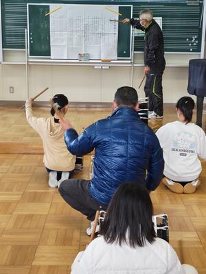 5年生稲作体験の締めくくりは、飯岡、内村地区に伝わる内村田植え踊りの伝承です。地域の方々と交流を深めながら、伝統を受け継ぎます。5年生意欲が高く、1日目にして笛と太鼓がバッチリあった🎶とのことです😊