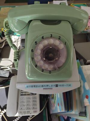 様々試してみましたが、修理が必要なようです。甚六の間の昭和の受話器もつながらず、、、残念でした。