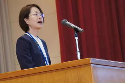 外国語指導講師に深山 亜礼 先生が飯小に赴任しました。3年生以上の子どもたちに外国語を指導します。今日は紹介式で、以前勤めていたフィリピンの学校の様子を子どもたちにお話ししました。これからどうぞよろしくお願いいたします。