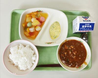 見た私たちが子グマだと思い、校内騒然としましたが、大きな黒ネコだとわかり、安心してカレーをいただきます。
