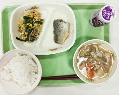 月曜からカレーが食べられるなんて♥かみかみ給食です。カレーが飲み物にならないように、れんこんをかみかみしますね。